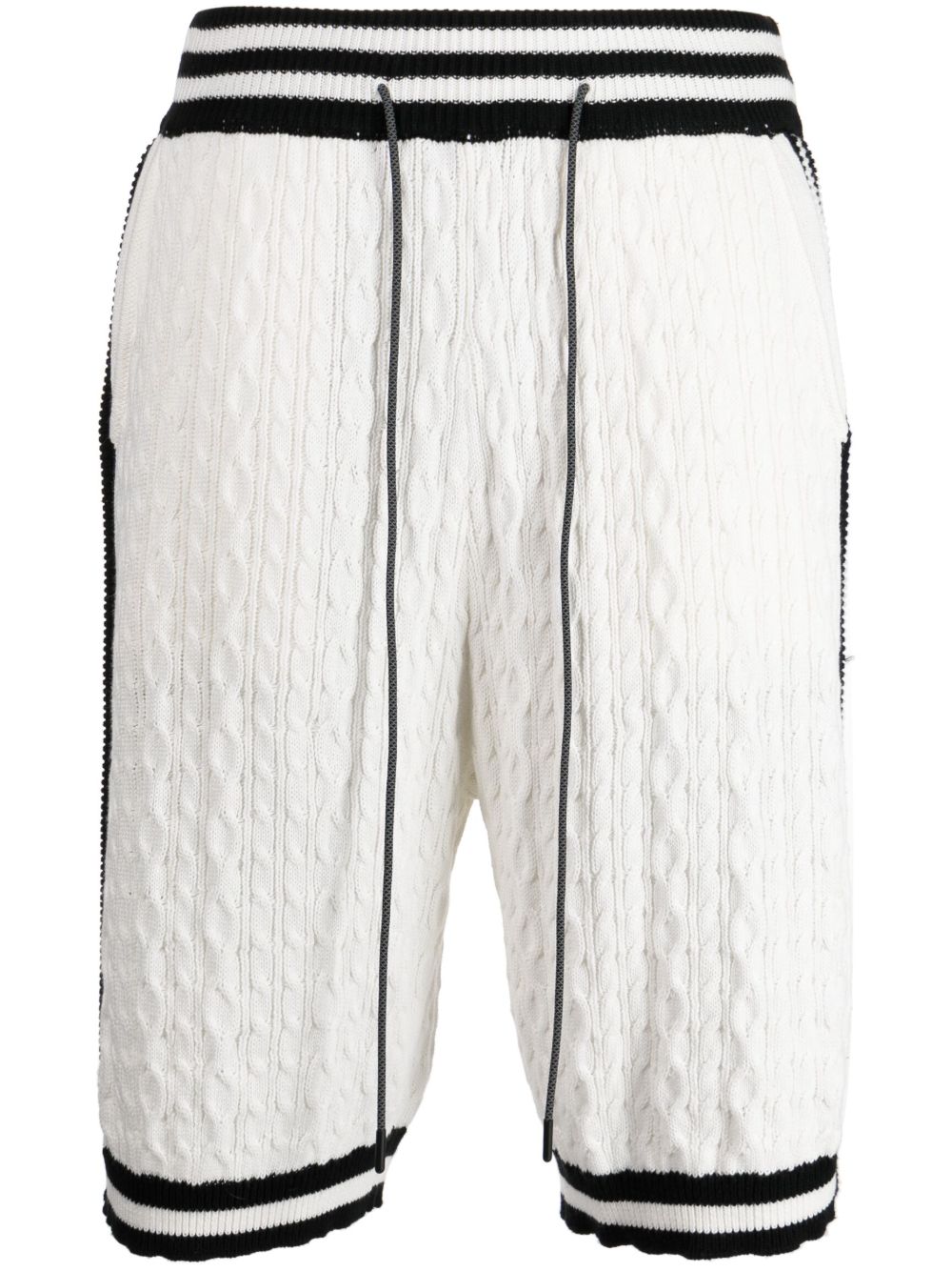 Mostly Heard Rarely Seen 粗绞花针织条纹运动短裤 - 白色