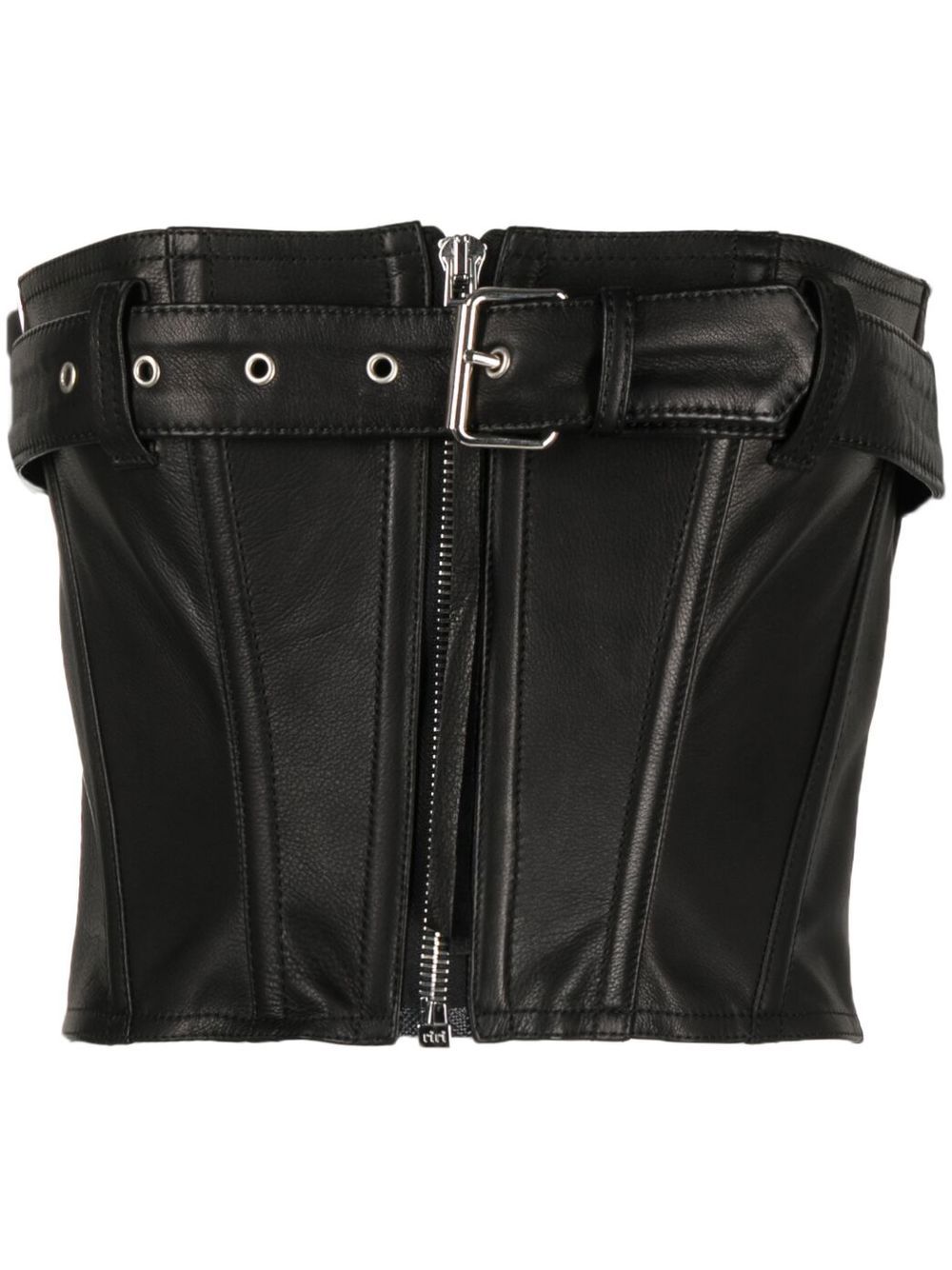 Faith Connexion 皮质束腰紧身胸衣式上衣 - 黑色