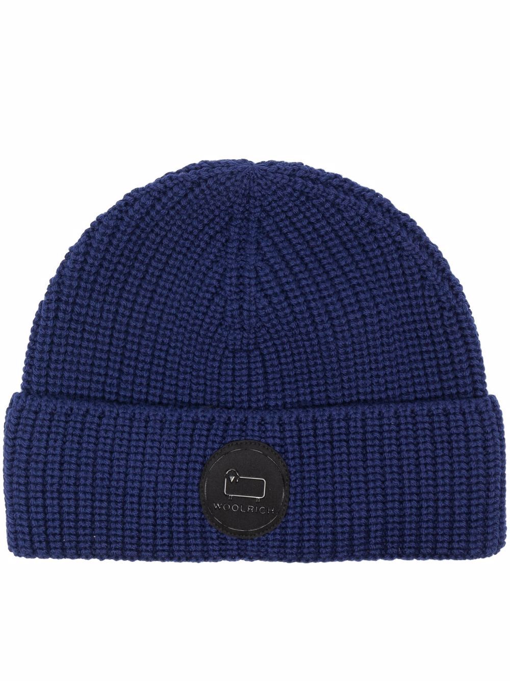 Woolrich 标贴双反面针织套头帽 - 蓝色