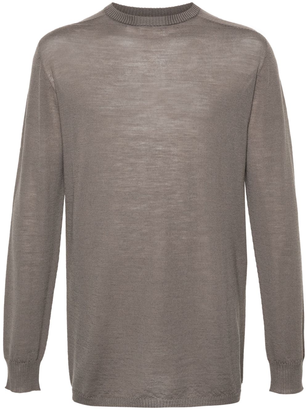 灰褐色 初剪羊毛 密织 罗纹圆领 长袖 罗纹袖口和下摆
