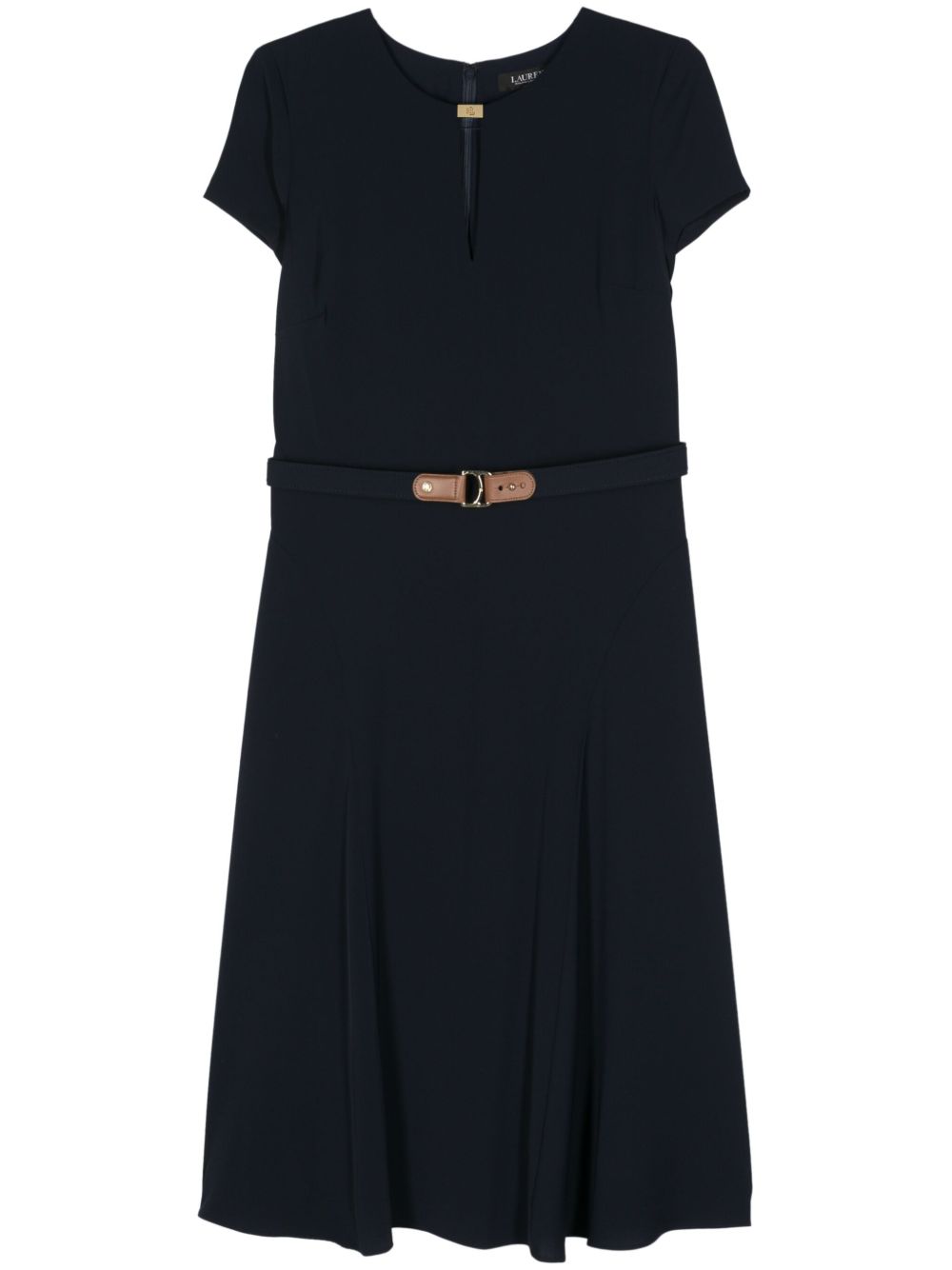 盖袖 海军蓝色 腰带袢 无衬里 省道细节 金色logo标牌 可拆卸可调节腰带 及膝 乔其纱 环保再生涤纶 伞形裙摆 后置隐藏式钩扣拉链开合 前往“至善前瞻标准”专题页,了解更多信息 这款商品含有至少 50% 环保回收或环保再生材料。对于环保再生合成服装商品,我们强烈推荐使用微纤维防渗洗衣袋,以确保洗涤过程中不会释放污染水源的微塑料。