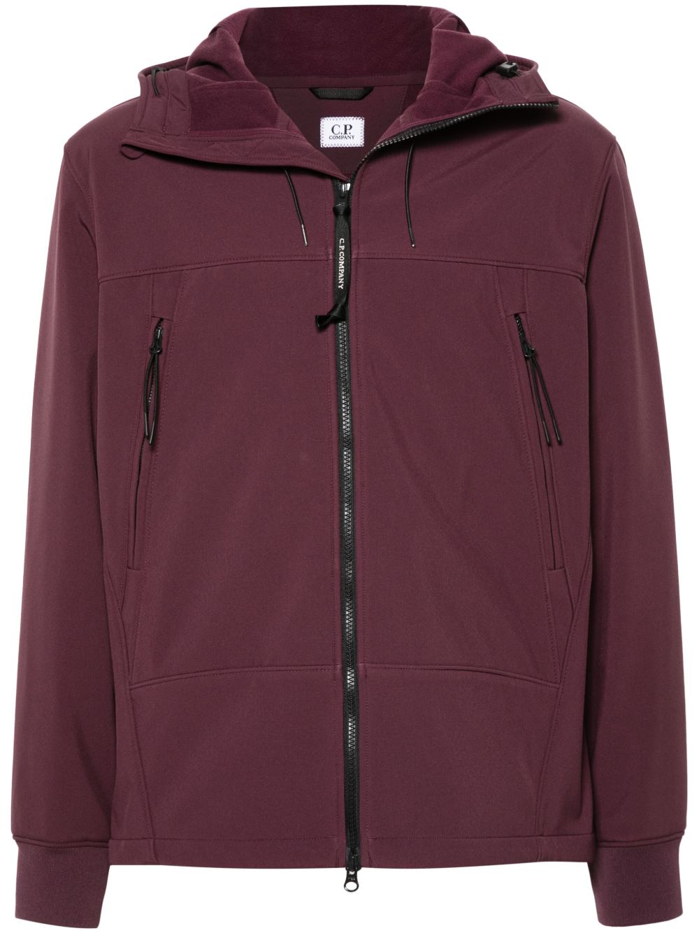 茄紫色 三层式透气弹性面料 防水 防风 标志性 Goggles 细节 正面饰有拉链开合 抽绳兜帽 高领 两个拉链胸袋 长袖 罗纹细节 内置拉链口袋 抓绒衬里