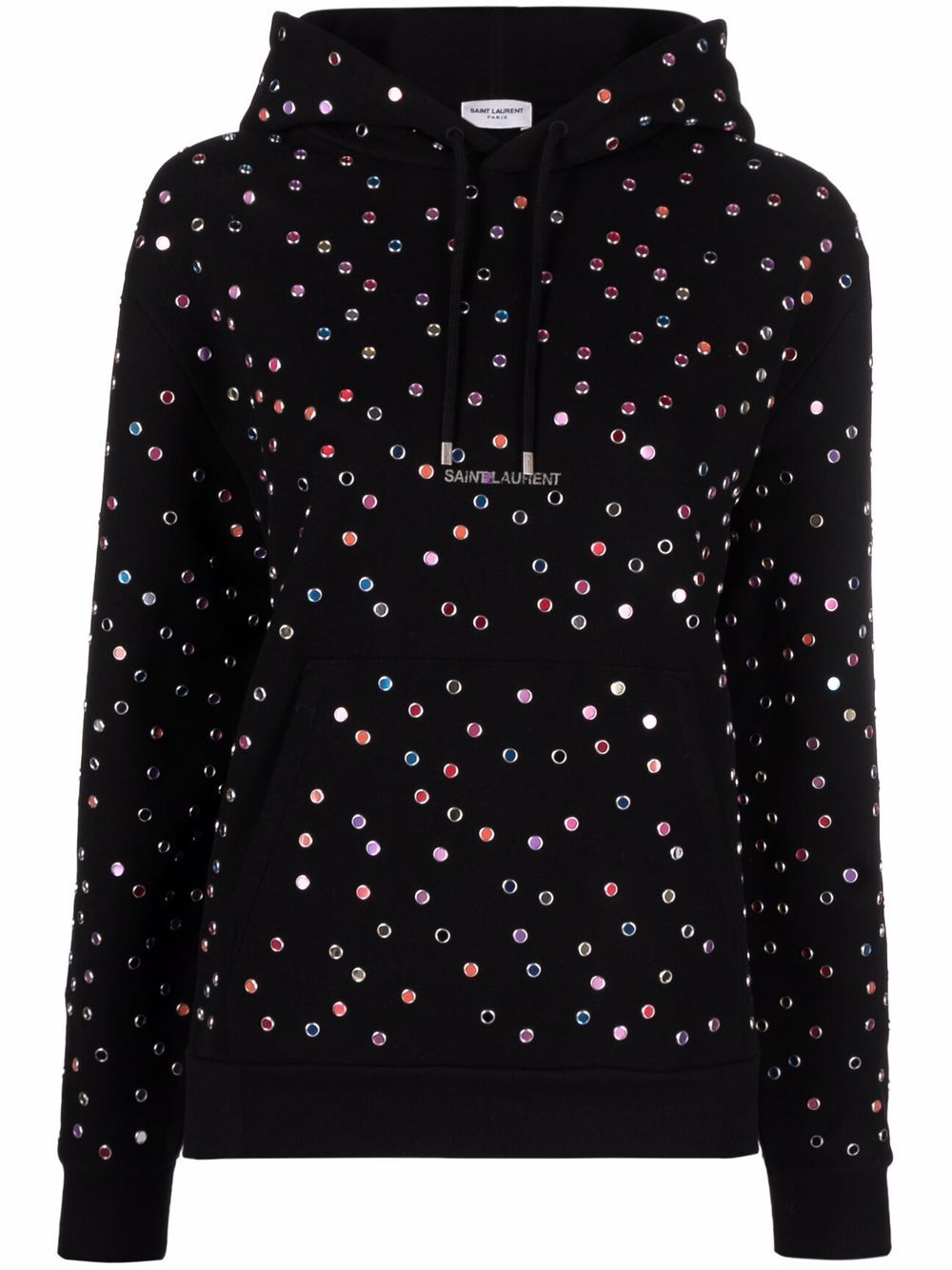 Saint Laurent logo印花抽绳连帽衫 - 黑色