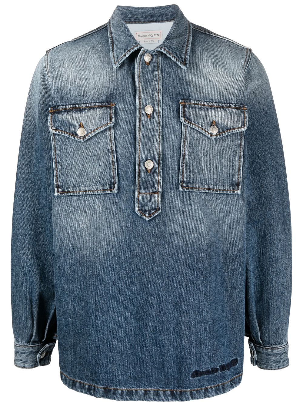 Alexander McQueen logo刺绣牛仔衬衫 - 蓝色