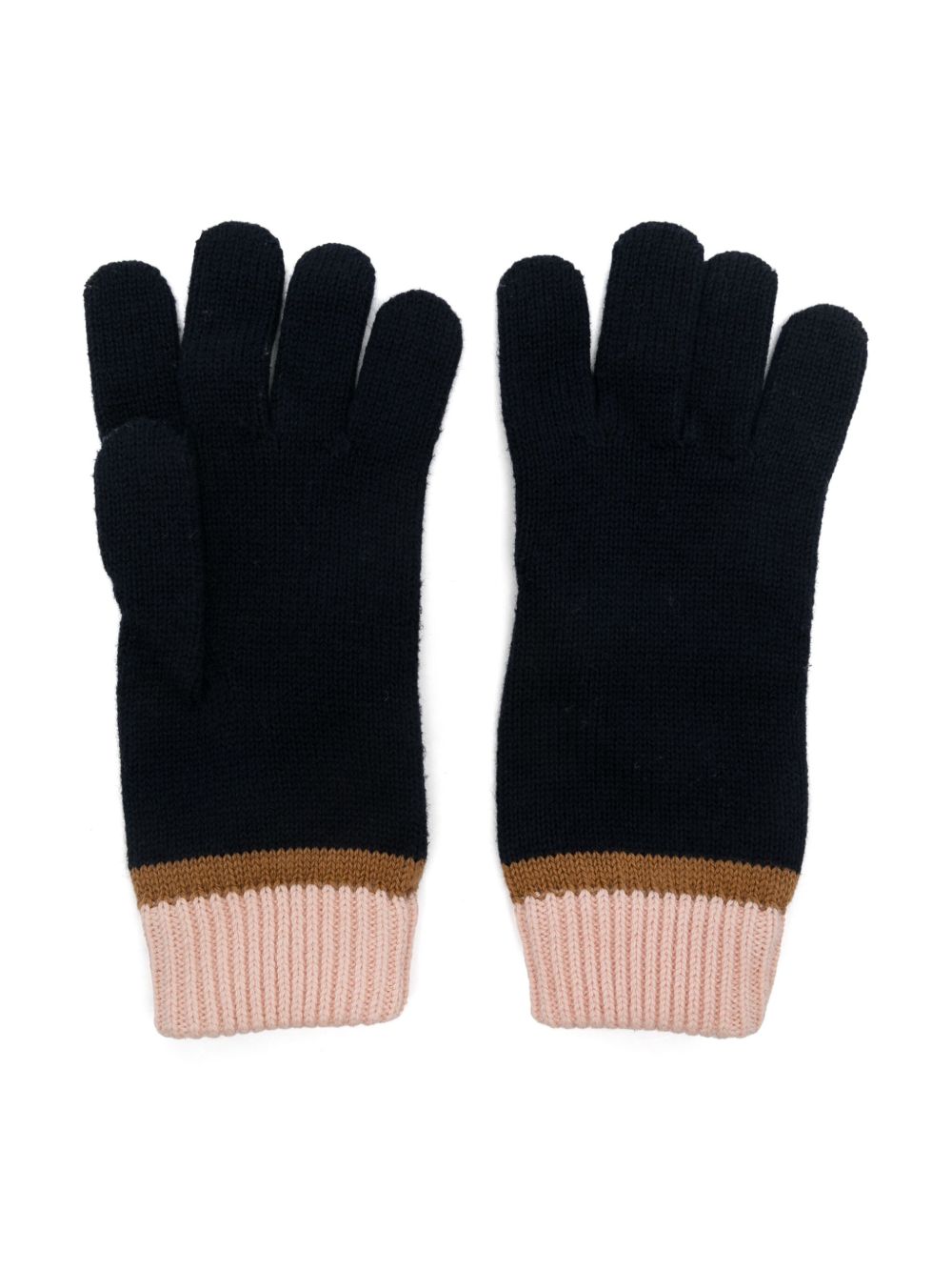 海军蓝色/浅粉色/驼棕色 棉质羊毛混纺 针织面料 正面饰有logo刺绣 全指设计 条纹罗纹边饰