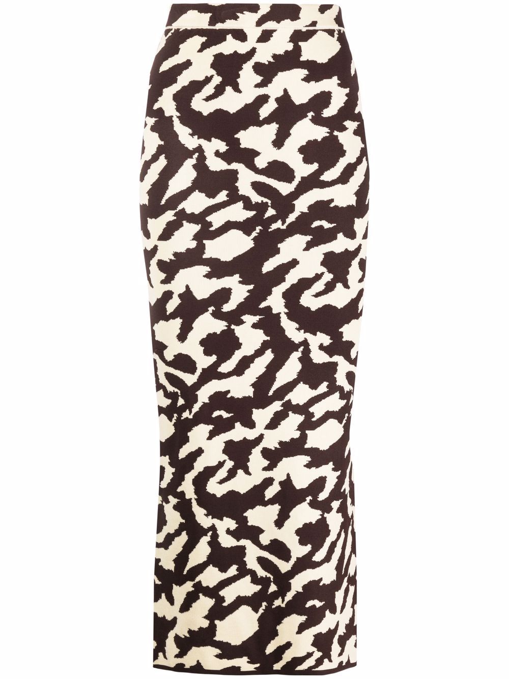 Nanushka 动物纹中长直筒半身裙 - 黄色