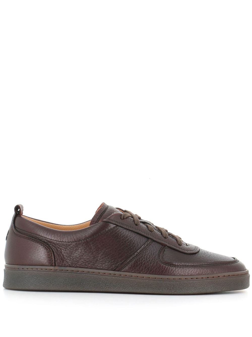 褐色 皮质 卵石纹理 拼接设计 正面系带 鞋后跟饰有品牌标志 logo印花鞋舌 圆头 logo皮质鞋垫 橡胶平底