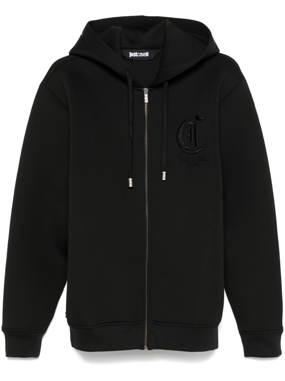 Just Cavalli logo刺绣连帽衫 - 黑色