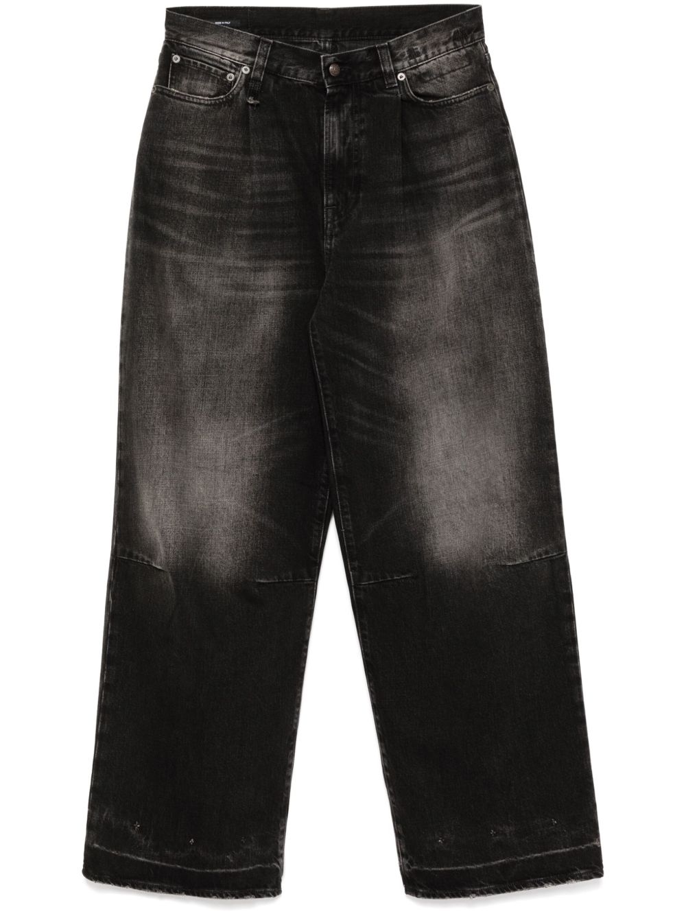 黑色 棉质混纺 正面饰有纽扣与拉链 腰带袢 经典五口袋 猫须效果 背面饰有logo贴花 同色系缝线细节