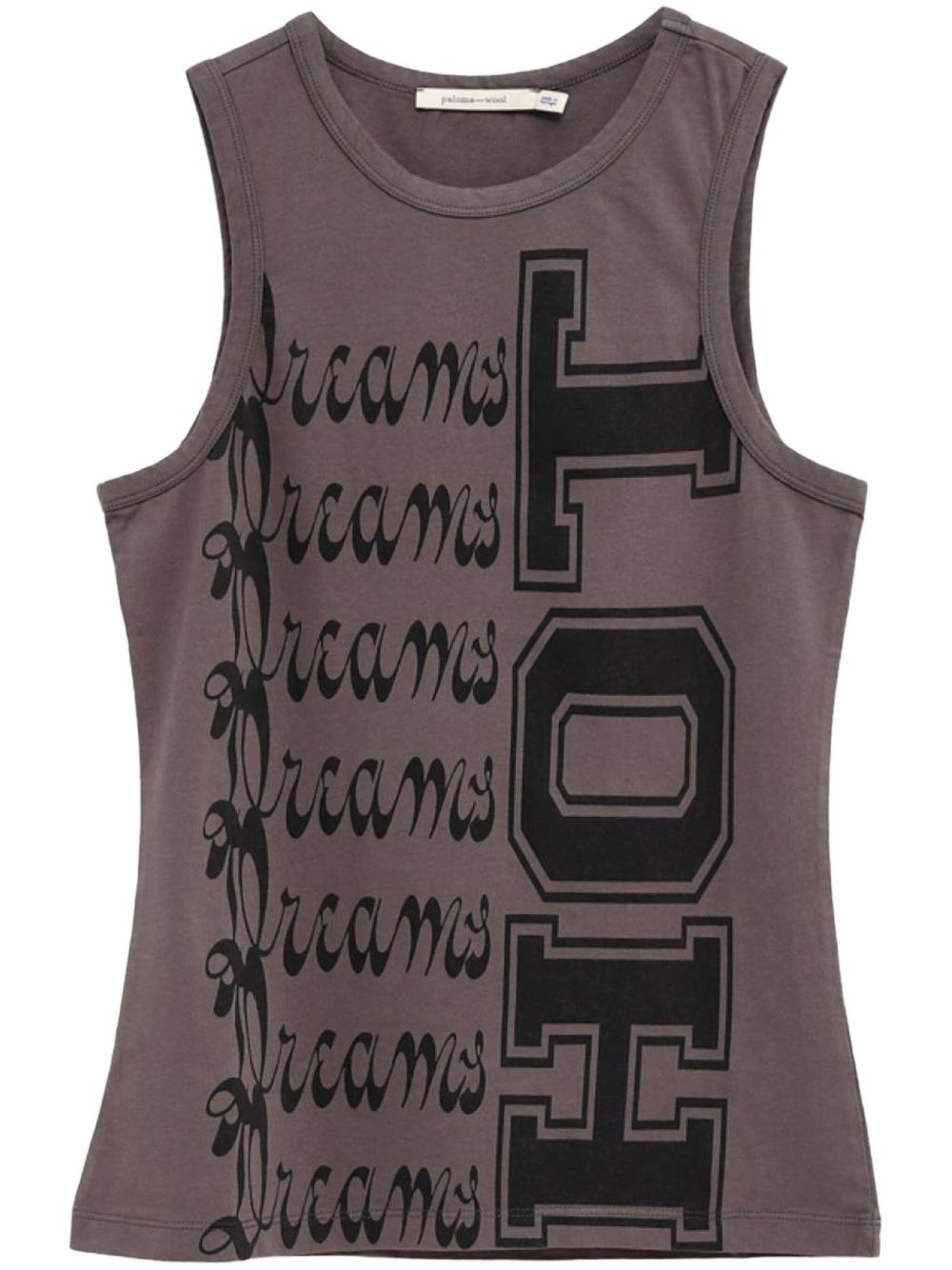 黑色和灰色 棉 标语印花 圆领 无袖 平直下摆