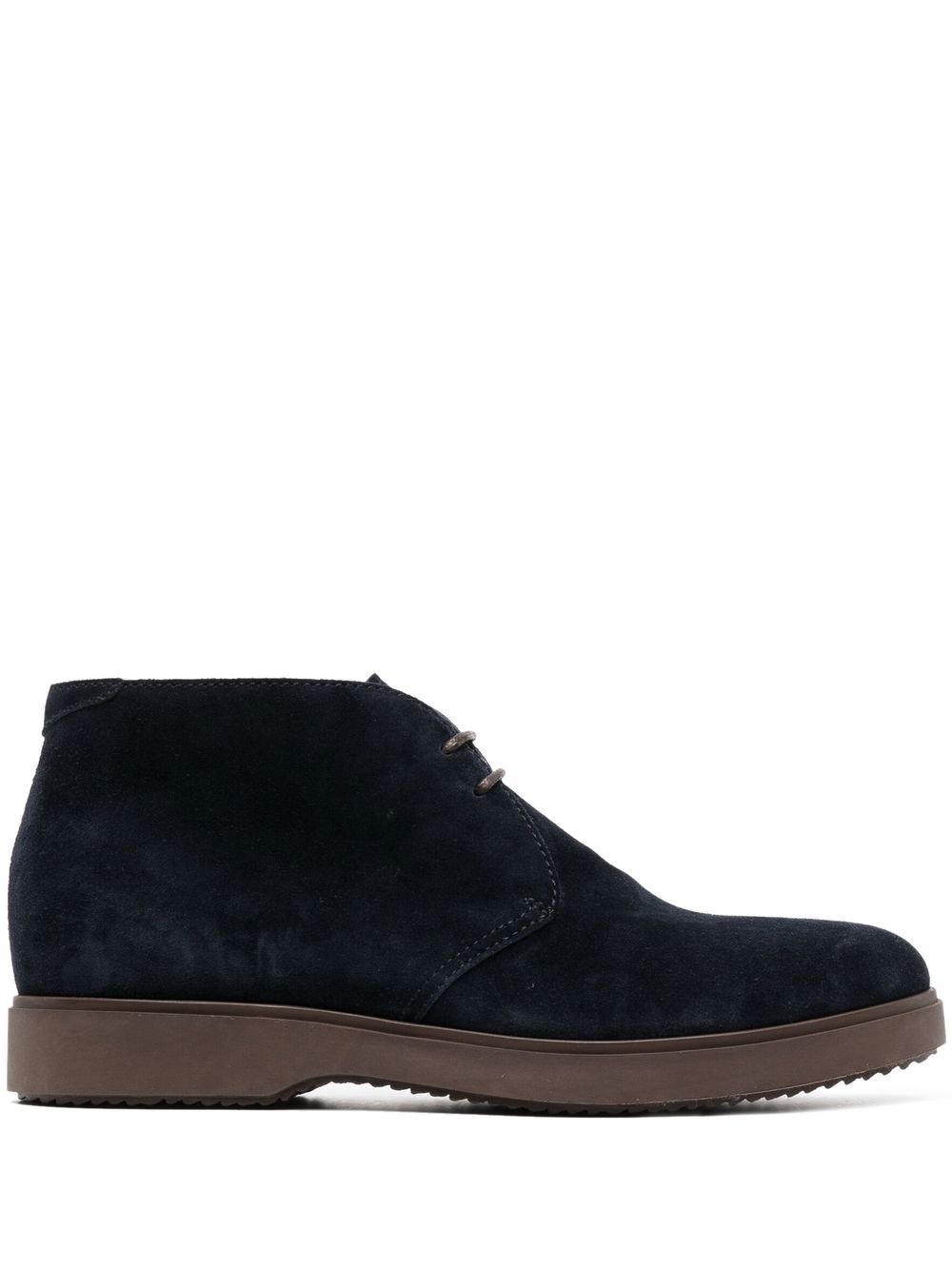 正面系带、及踝、圆头、橡胶平底、logo皮质鞋垫。
