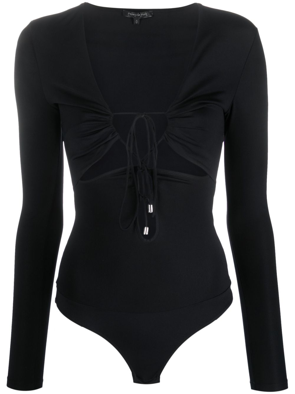Patrizia Pepe 系带开合镂空连体紧身衣 - 黑色