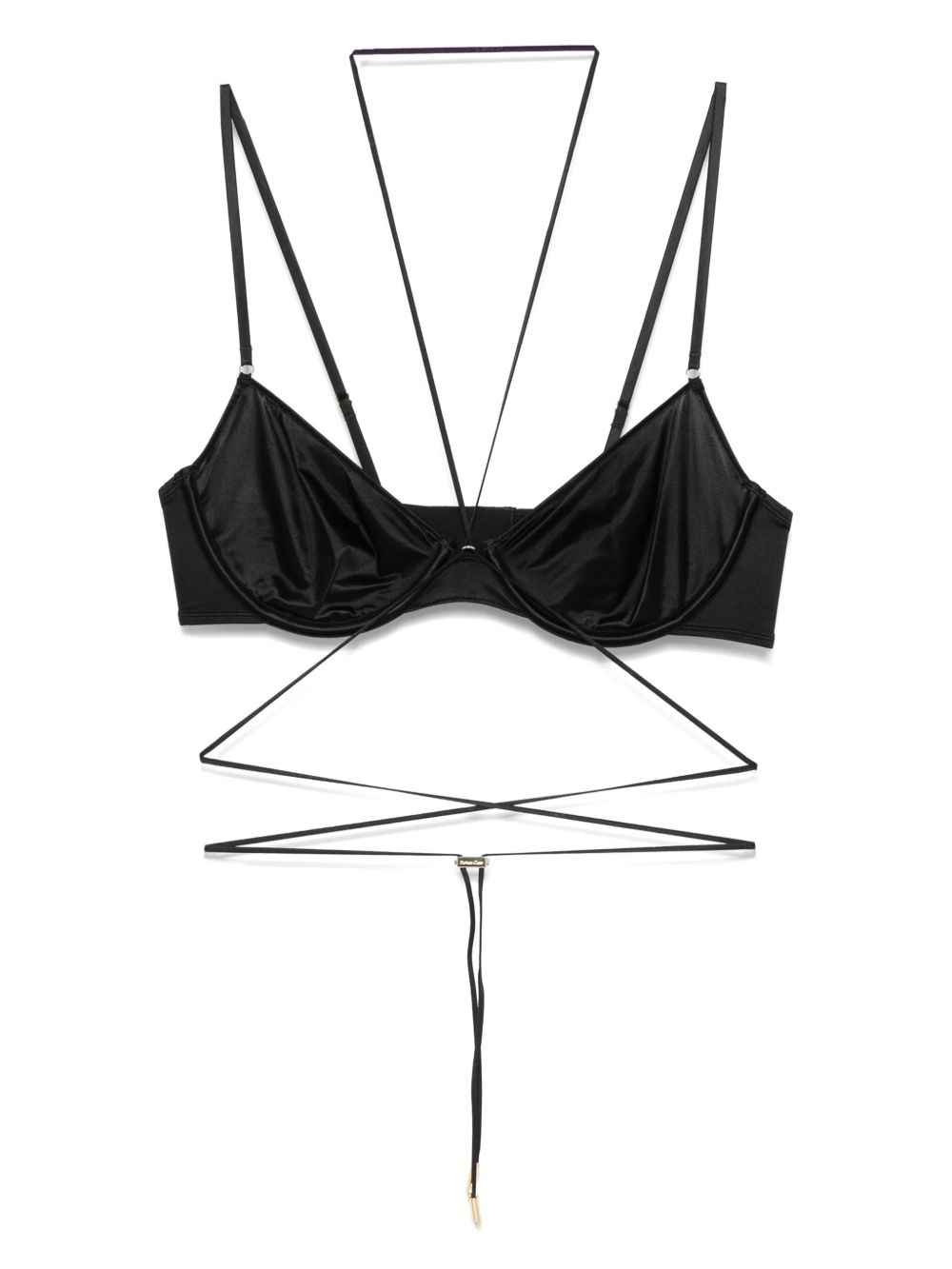 黑色 弹性设计 缎面光泽 半透明设计 钩眼扣 带钢圈文胸 可调式细肩带