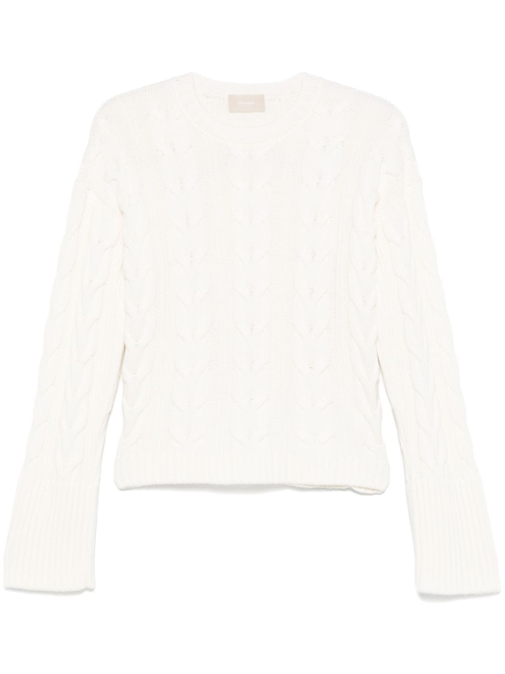白色 美利诺羊毛 绞花针织 圆领 长袖 平直下摆