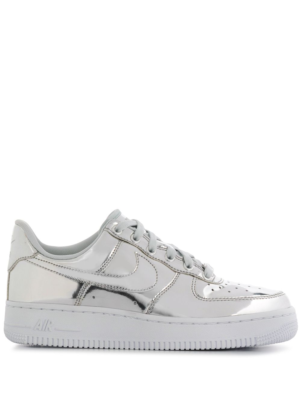 这款Air Force 1 板鞋来自Nike (耐克)。设计细节:圆头、镂空穿孔设计、正面绑带、经典耐克swoosh标识、鞋舌部位附有标贴、印有品牌标志的环绕鞋托、橡胶质平底。
