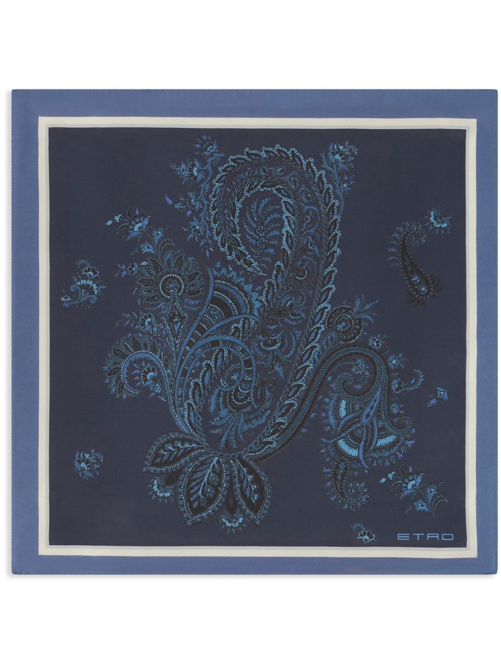 ETRO 佩斯理印花真丝口袋方巾 - 蓝色