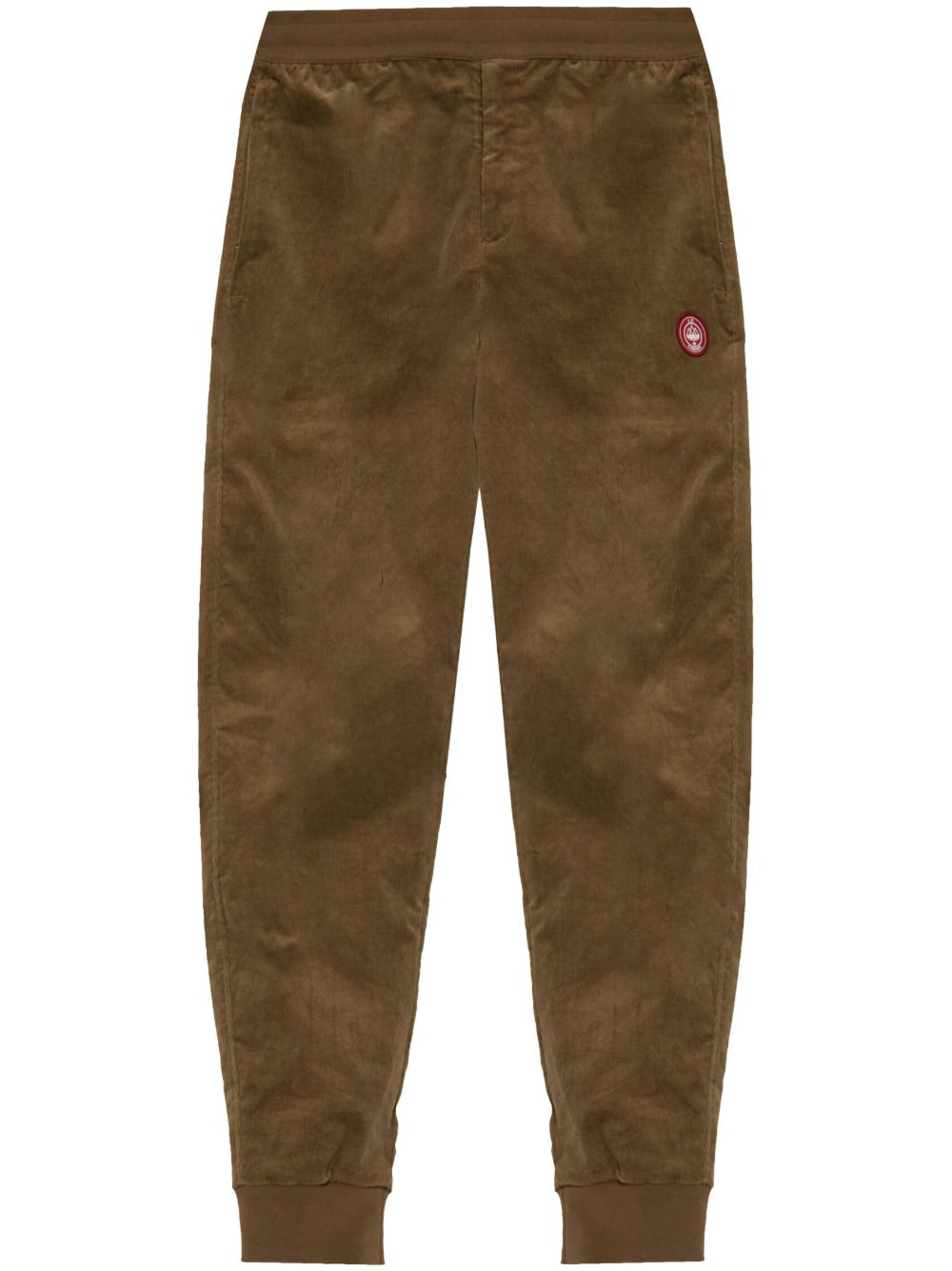 褐色 弹性松紧腰边 两侧饰有挖袋 灯芯绒 贴花logo