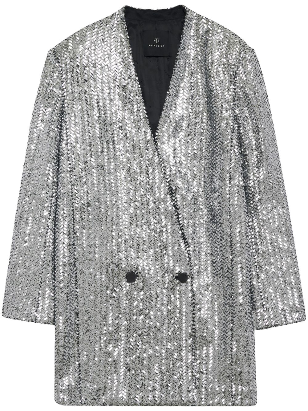 银色 双排扣 无领设计 长袖 亮片设计