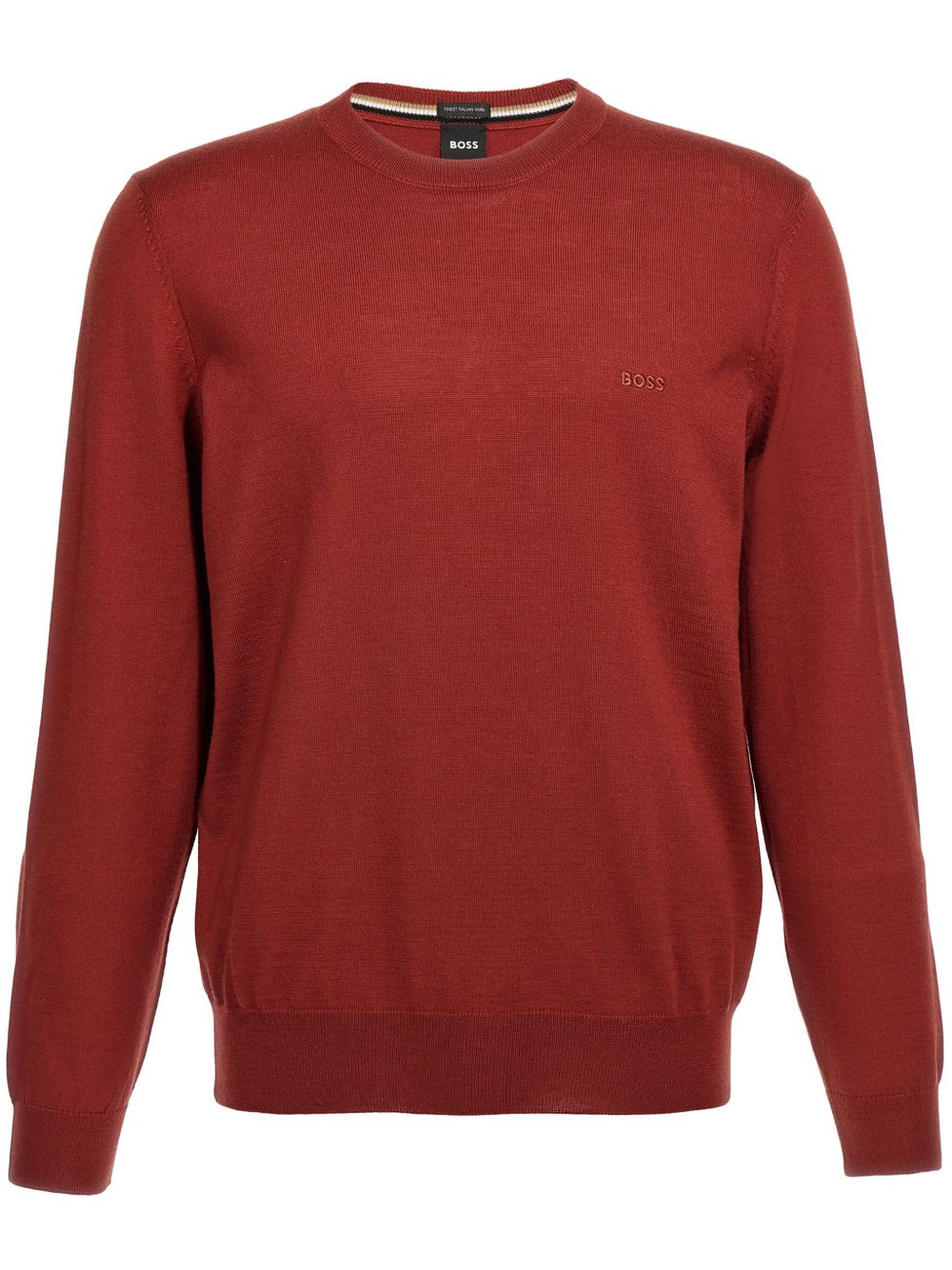 红色 罗纹袖口和下摆 圆领 长袖 胸前饰有logo刺绣