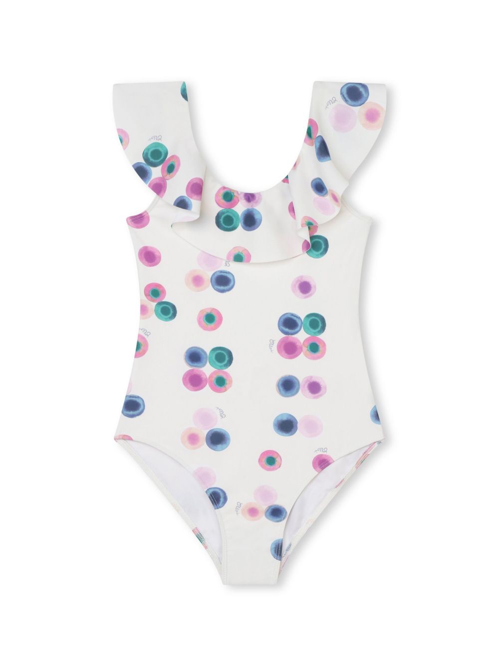 Chloé Kids 荷叶边抽象印花连体泳衣 - 白色