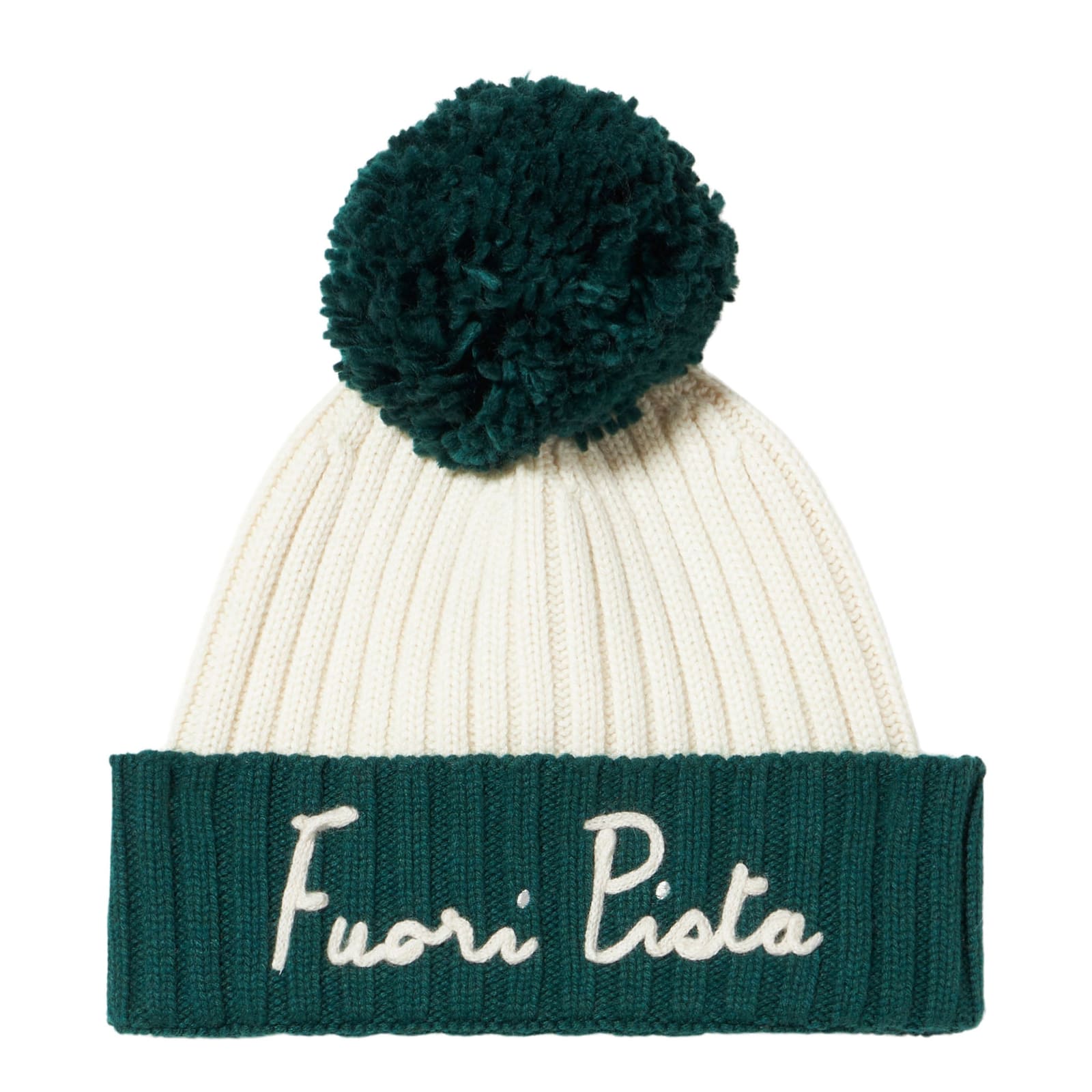 Man knit beanieWhite and green solid colorsFuori Pista embroidery on the frontComposition: Blended cashmereRegular fit
