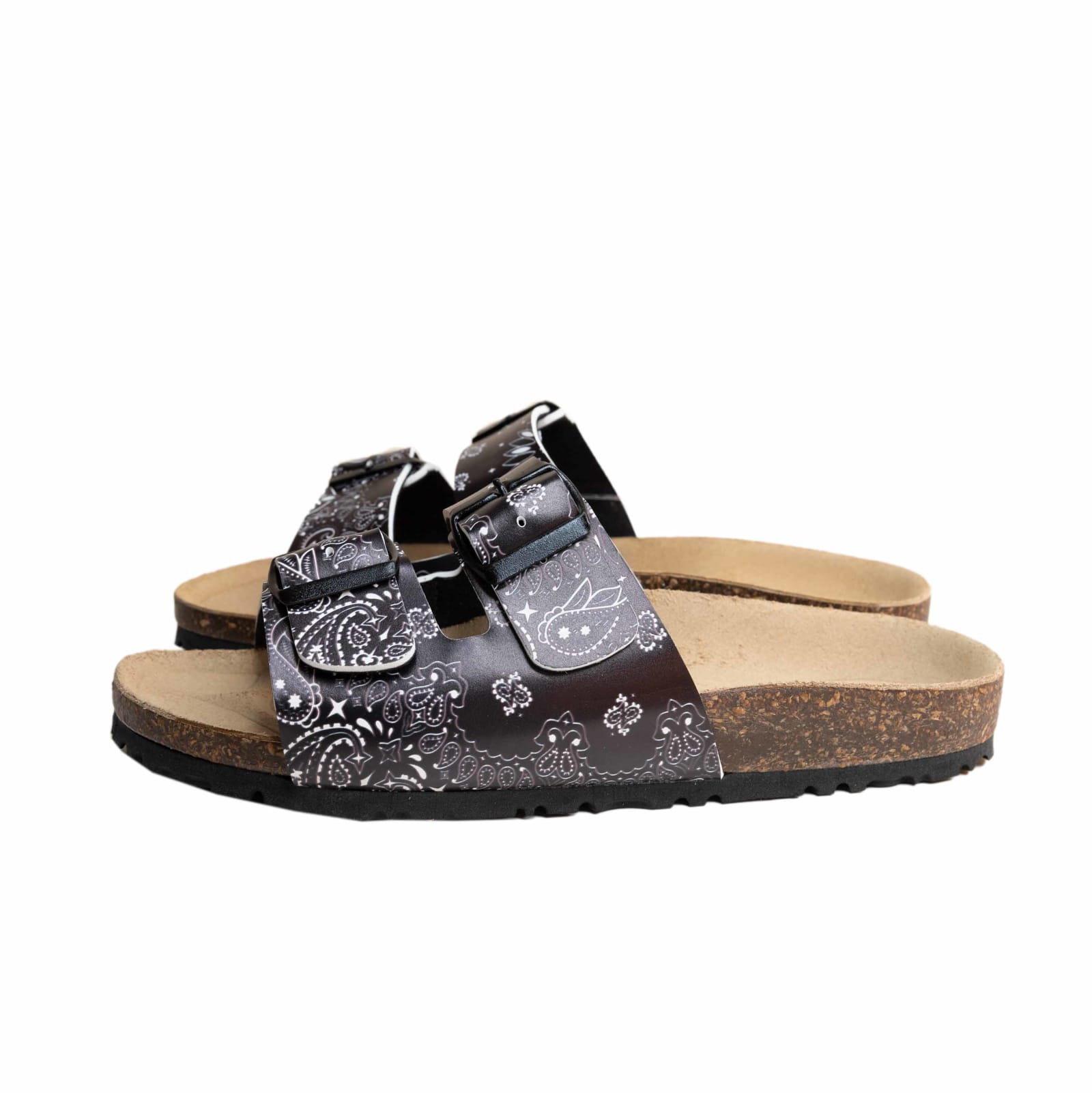 Man cork sandalsBlack bandanna all over print>BR>Two adjustable straps
