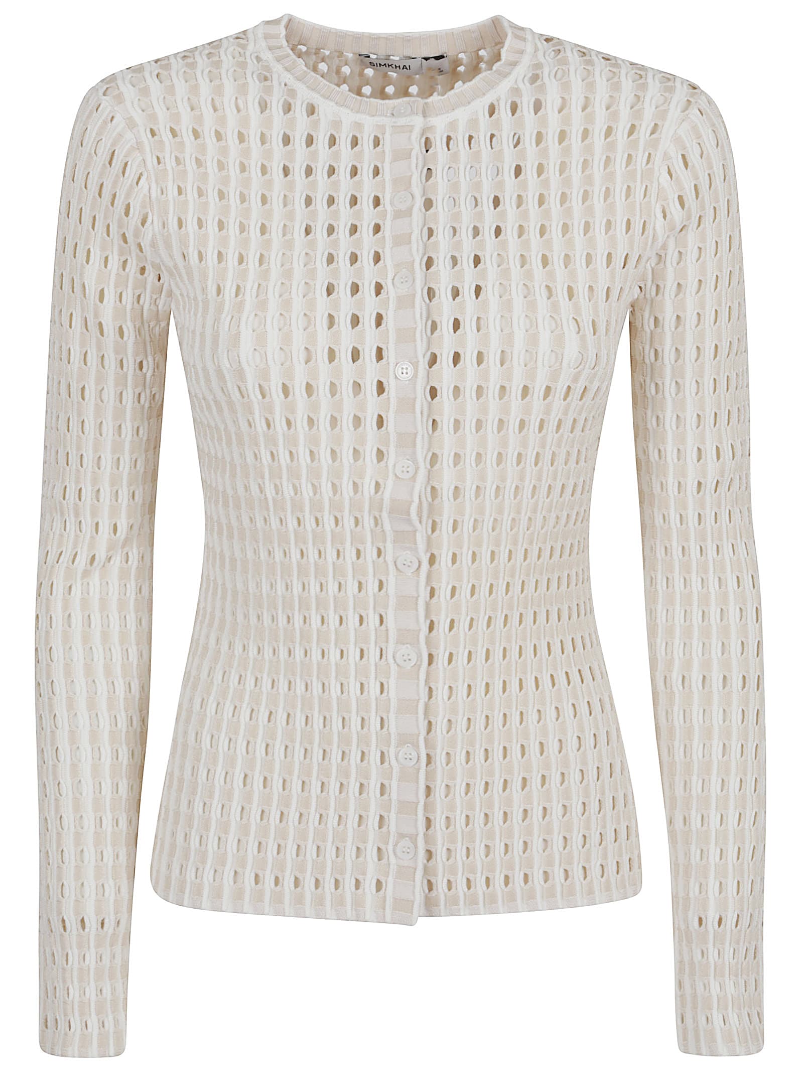 Gracen Knit Cardigan by JONATHAN SIMKHAI. Crewneck; front button closure; slim fit design that hugs the body. Made from a gingham knit.