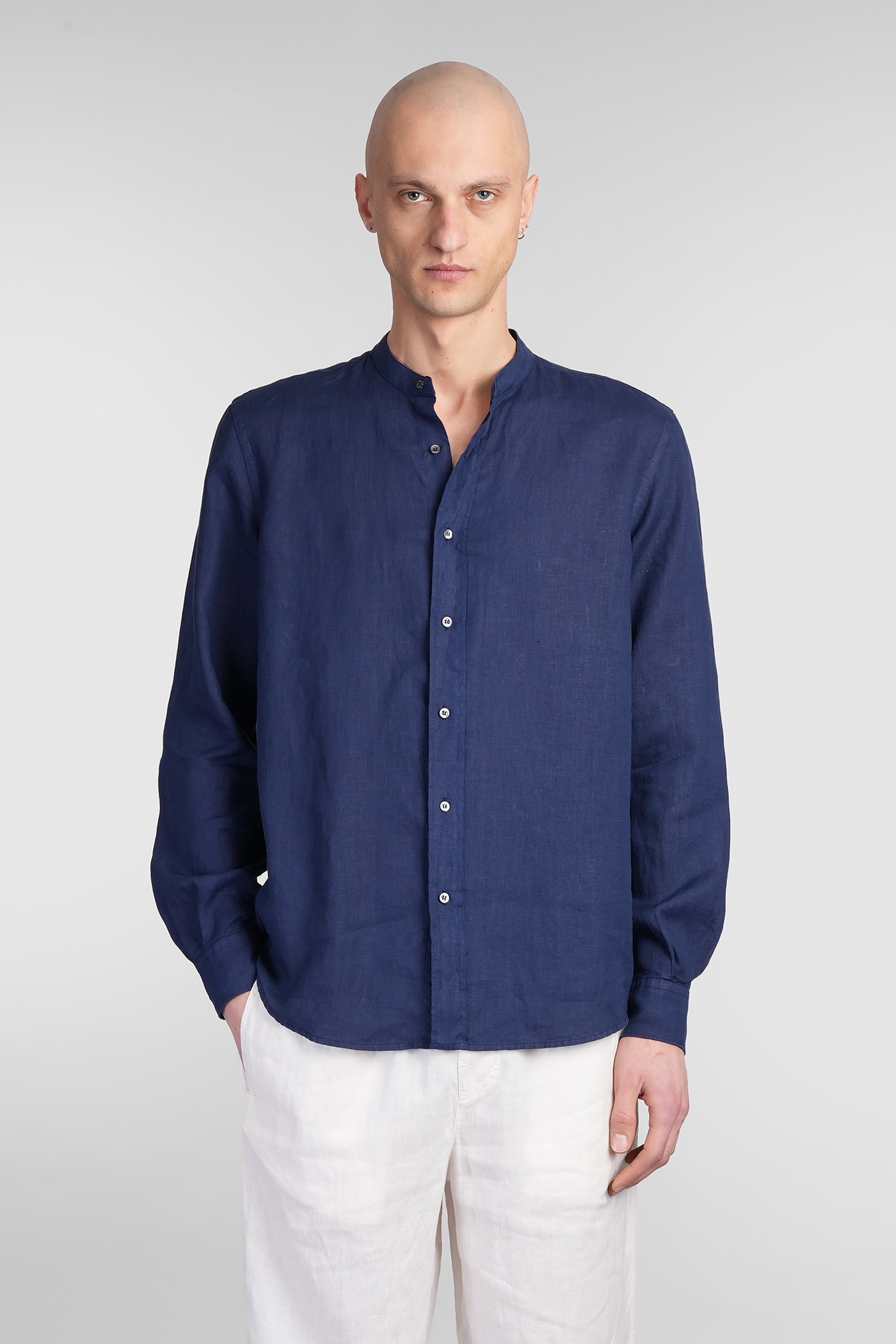 Aspesi Bruce Shirt In Blue Linen