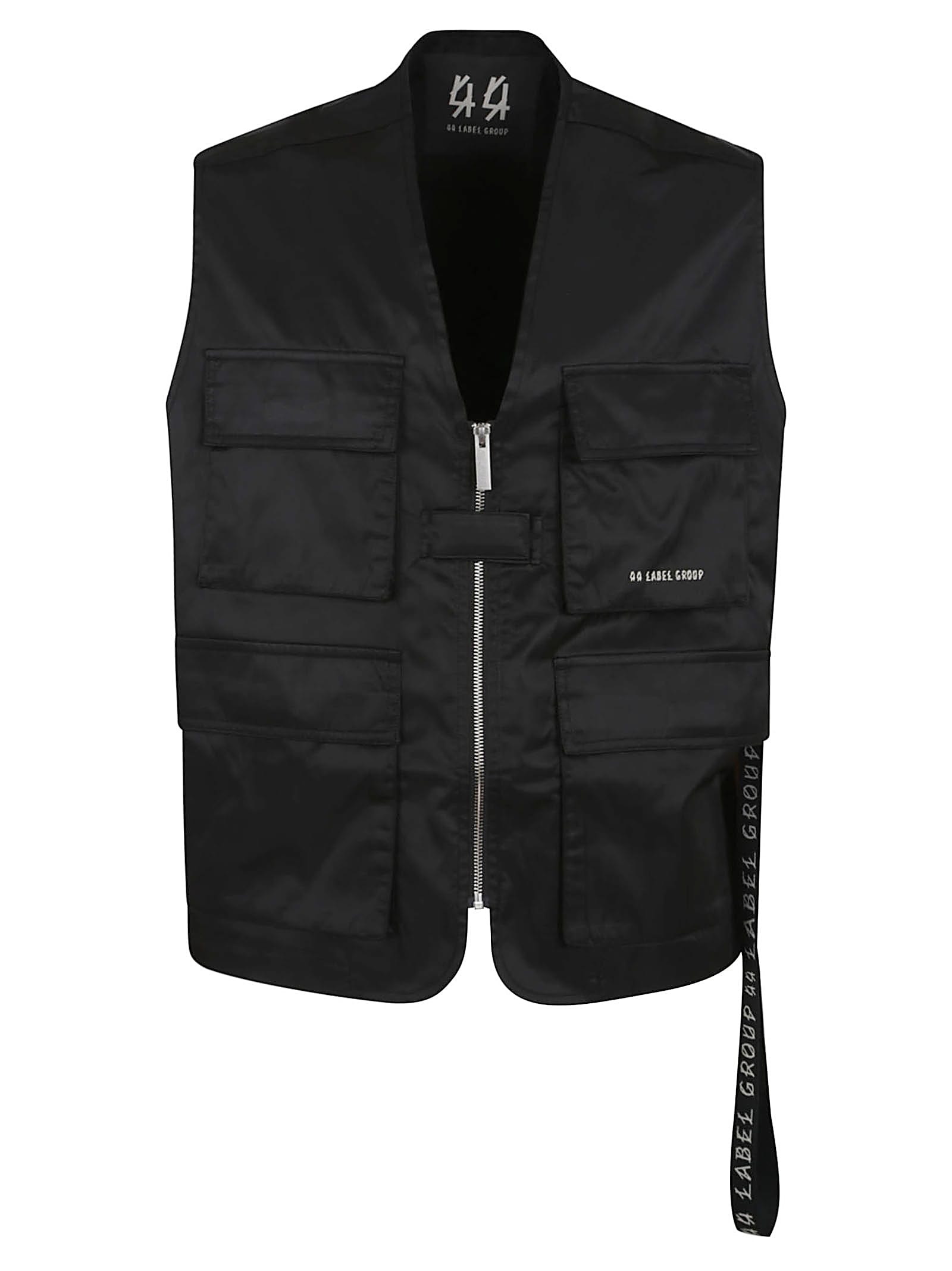 44 LABEL GROUP 尼龙马甲:拉链闭合,四个带翻盖贴袋,前胸上部口袋印有logo印花。