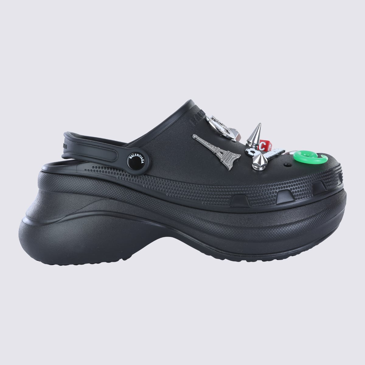 Balenciaga黑色皮革凉鞋,圆头,厚底,正面细节,后跟固定;材质:鞋面100% El Sole,100% Elastodiene