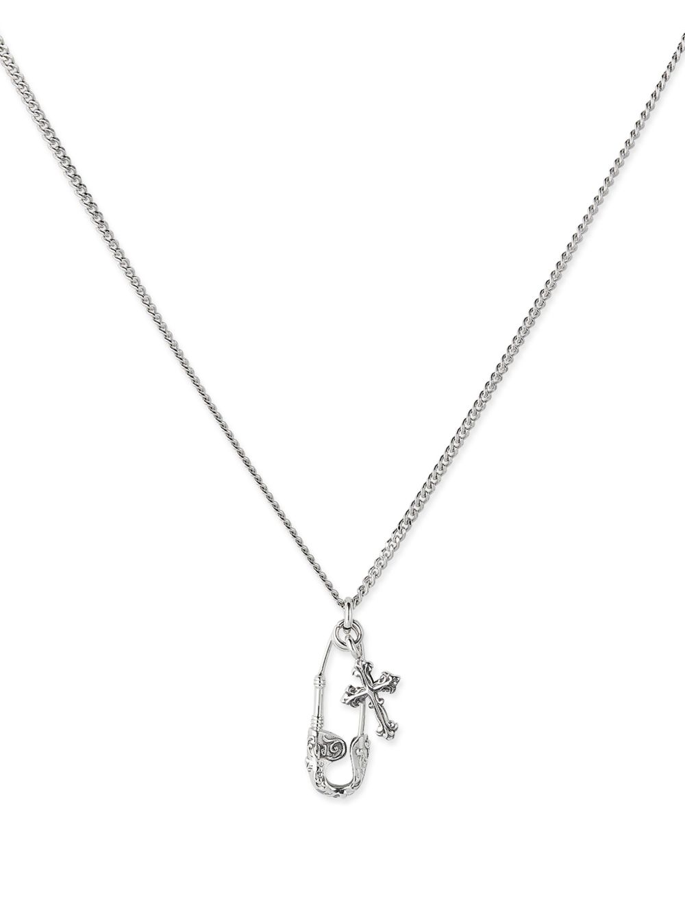 银质 纯银 抛光效果 锁链 十字架坠 安全别针细节 雕刻细节