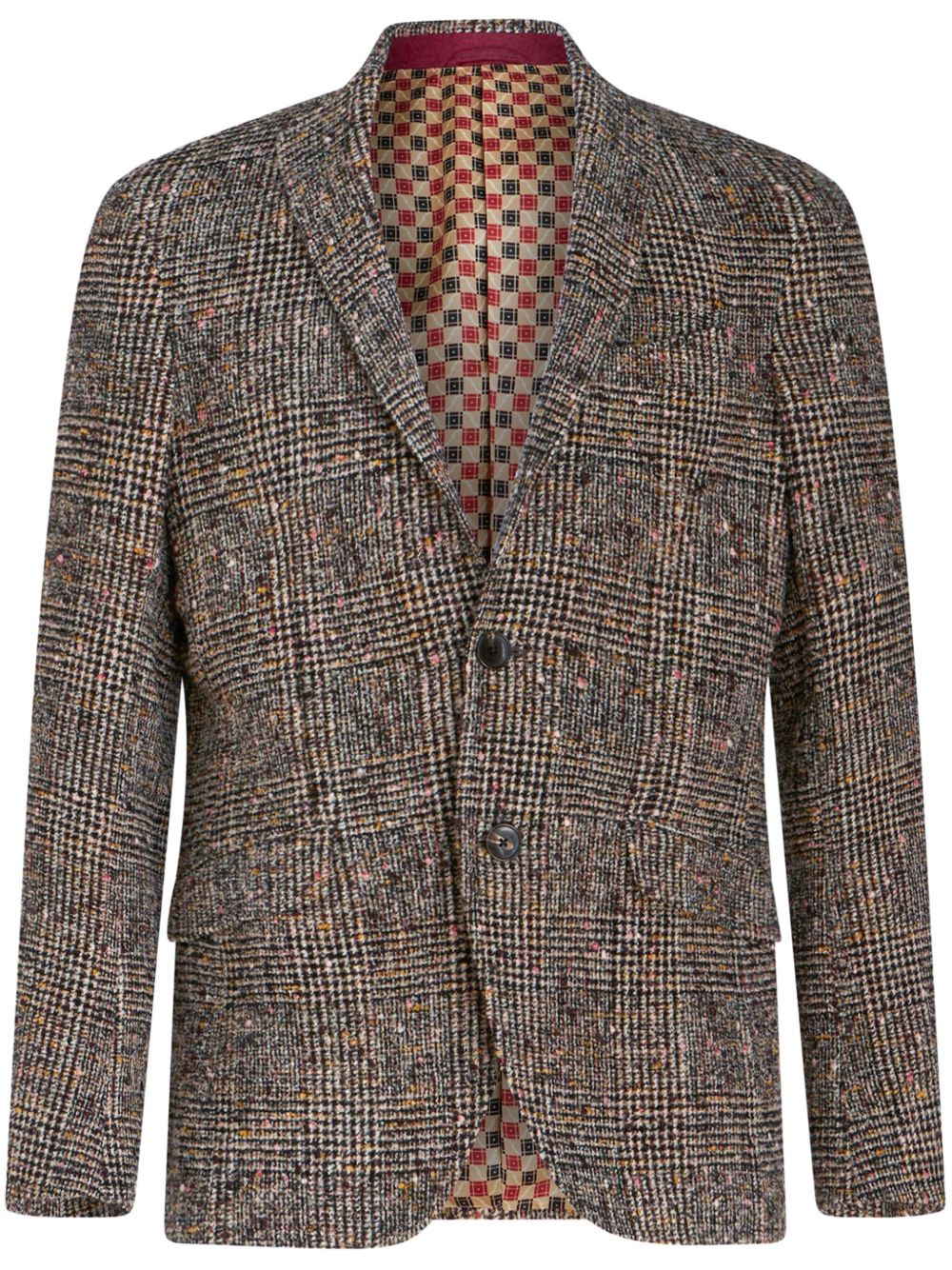 ETRO 梯形翻领格纹西装夹克 - 褐色