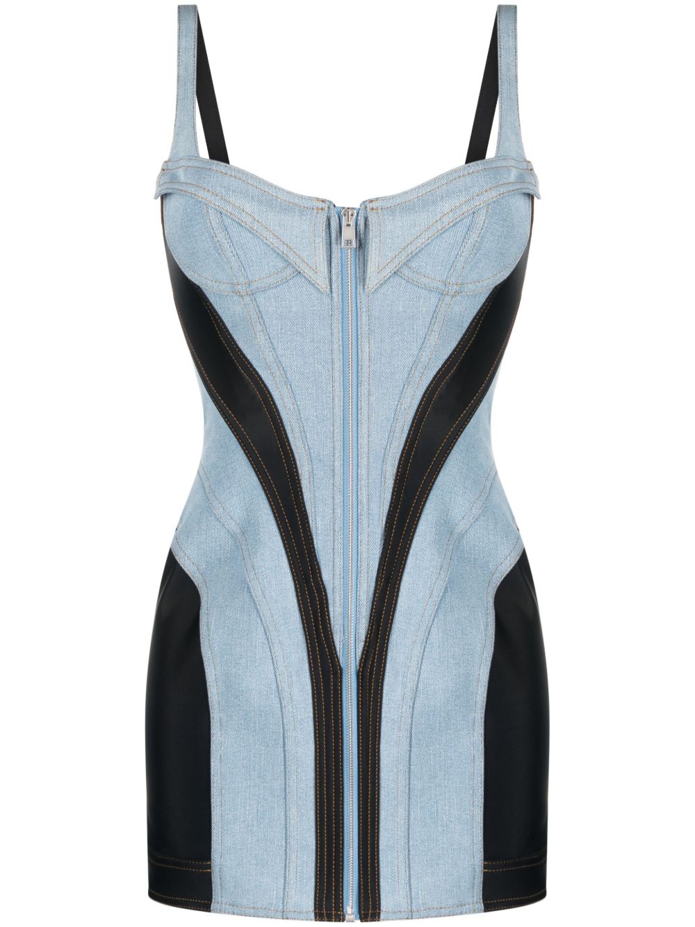 Mugler 紧身胸衣式牛仔迷你连衣裙 - 黑色