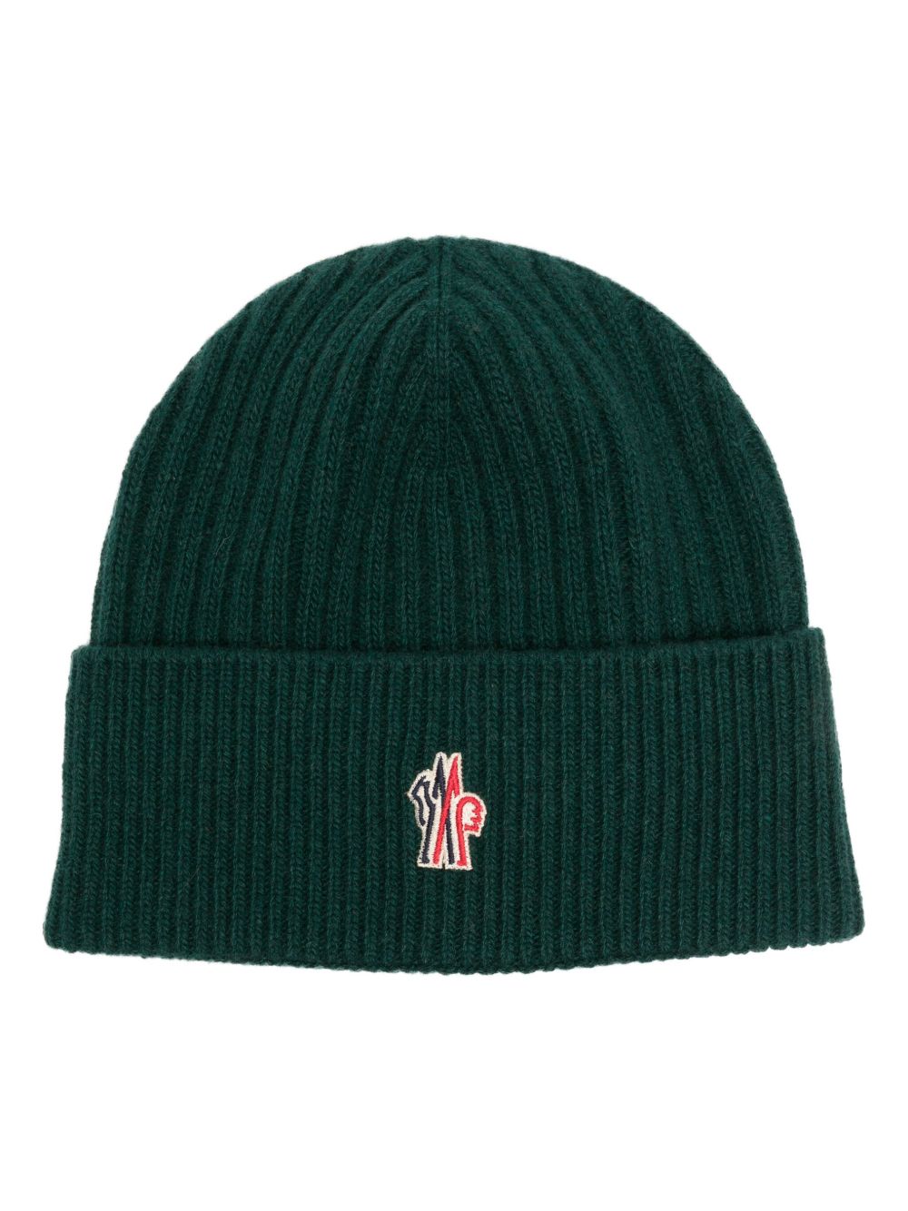 Moncler Grenoble logo刺绣罗纹针织套头帽 - 绿色