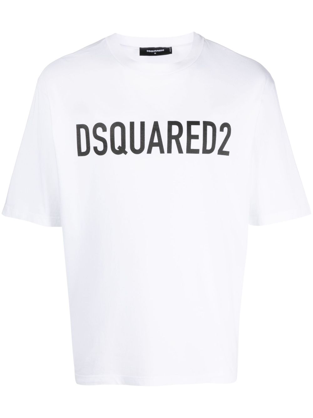 白色和黑色、棉、平纹针织、正面 logo 印花、圆领、短袖、平直下摆。