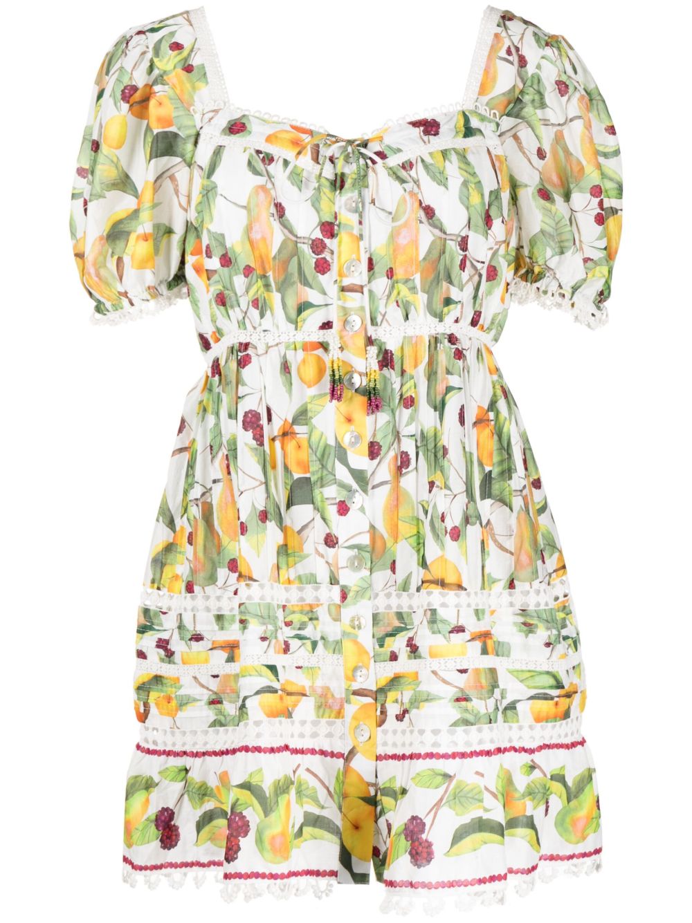 FARM Rio Orchard 花卉印花迷你连衣裙 - 白色