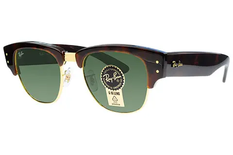 Ray Ban has a brand new take on its signature sunglasses style, the Clubmaster The Ray Ban RB0316S Mega Clubmaster Tortoise is as vintage Ray Ban as it is innovative. This extravagant model holds the same iconic Clubmaster essence, featuring extra thickness at the browline and the temples for a modern, dramatic twist. It is a timeless, flattering look for men and women, whatever the weather. Wear them indoors or outdoors, the progressive ready green tinted lenses feature 100% UVA and UVB sun protection. This authentic piece of kit comes with the Ray Ban logo in gold at the temples and on the lenses.