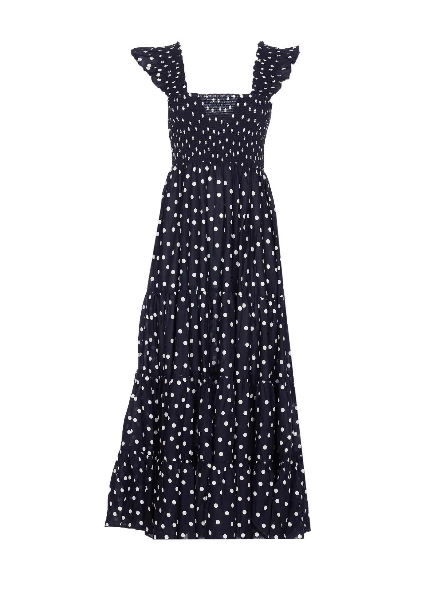 Rixo blue Kendall dress, elasticized, sleeveless, all over dots print, long modelComposition: 100% Cotton