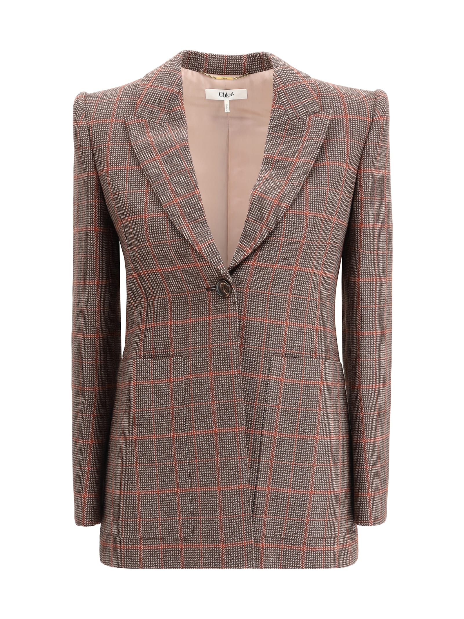 Chloé's wool plaid blazer stands out for its sleek and contemporary design. single-breasted, it features oversized front patch pockets that add a modern and practical touch to the garment. the single engraved horn button completes the look with a refined and distinctive detail, making this blazer perfect for those seeking a balance between classic style and innovation. Composition: 100% % Wool
