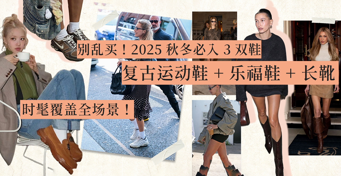 别乱买!2025 秋冬必入 3 双鞋:复古运动鞋 + 乐福鞋 + 长靴,时髦覆盖全场景!