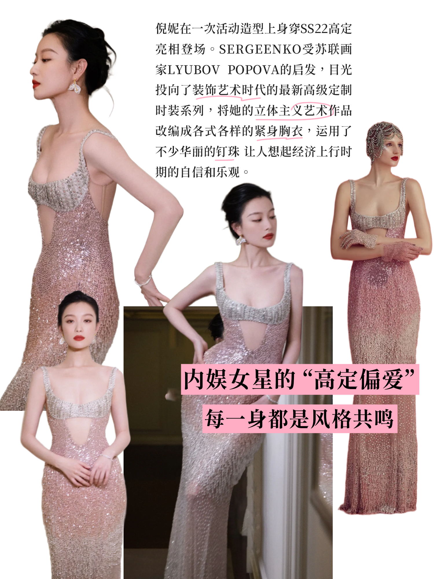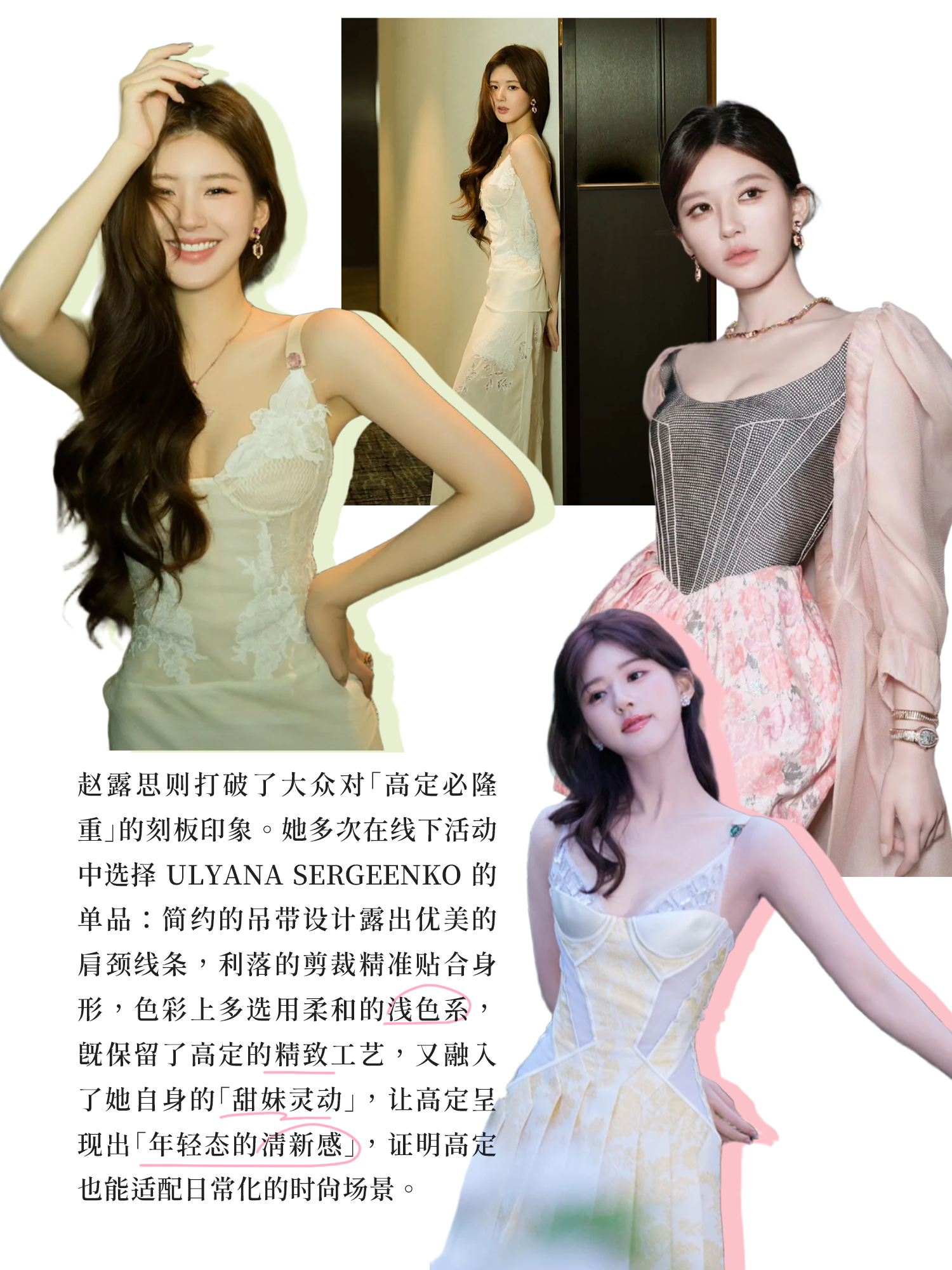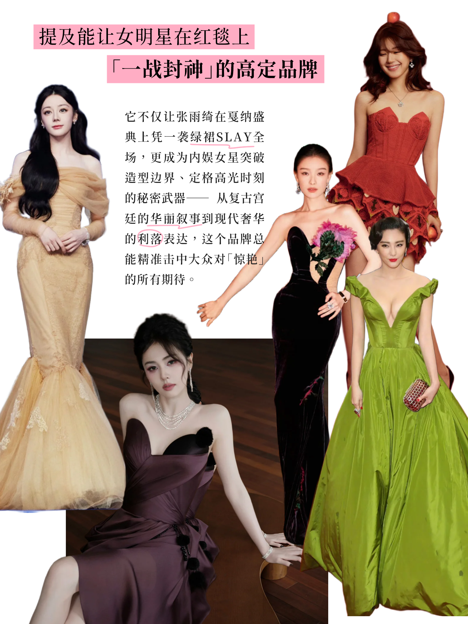 Ulyana Sergeenko 印花束腰伞摆连衣裙 - 绿色